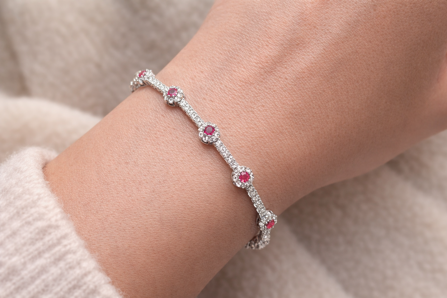 Home/Style/Bracelet/7.9 Gms Silver Bracelet Pink CZ Design