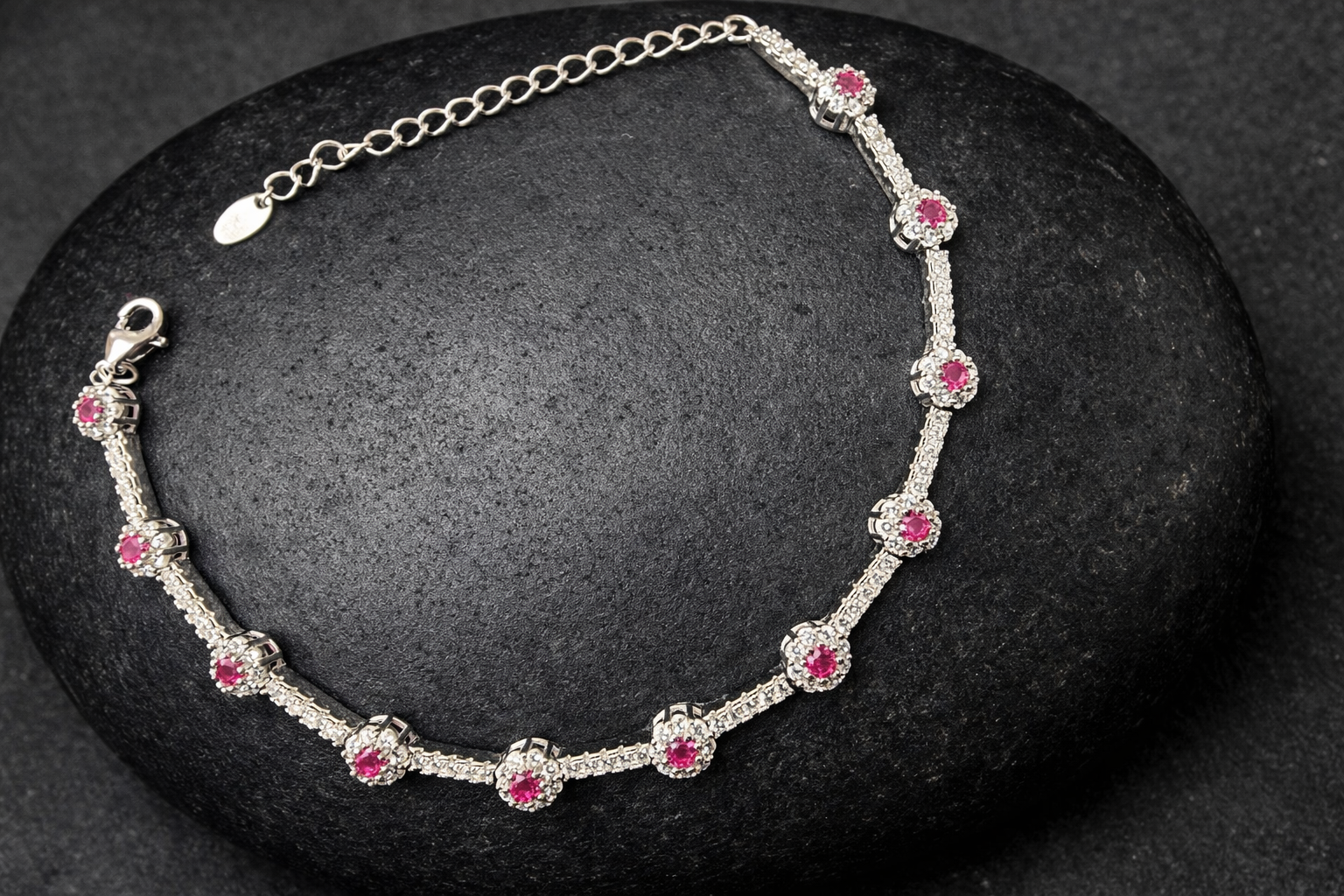 7.9 Gms Silver Bracelet Pink CZ Design