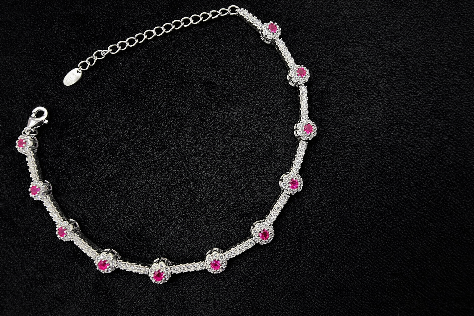 7.9 gms Silver Bracelet Pink Cubic Zircon Design for ladies near me Adjustable Silver Rate About Jewelry : The diamonds is setted with micro setting to make the look more better.The plating thick