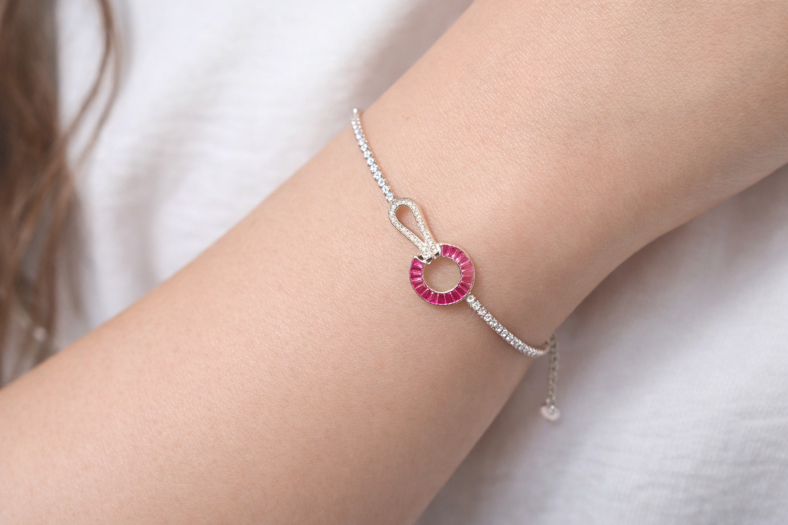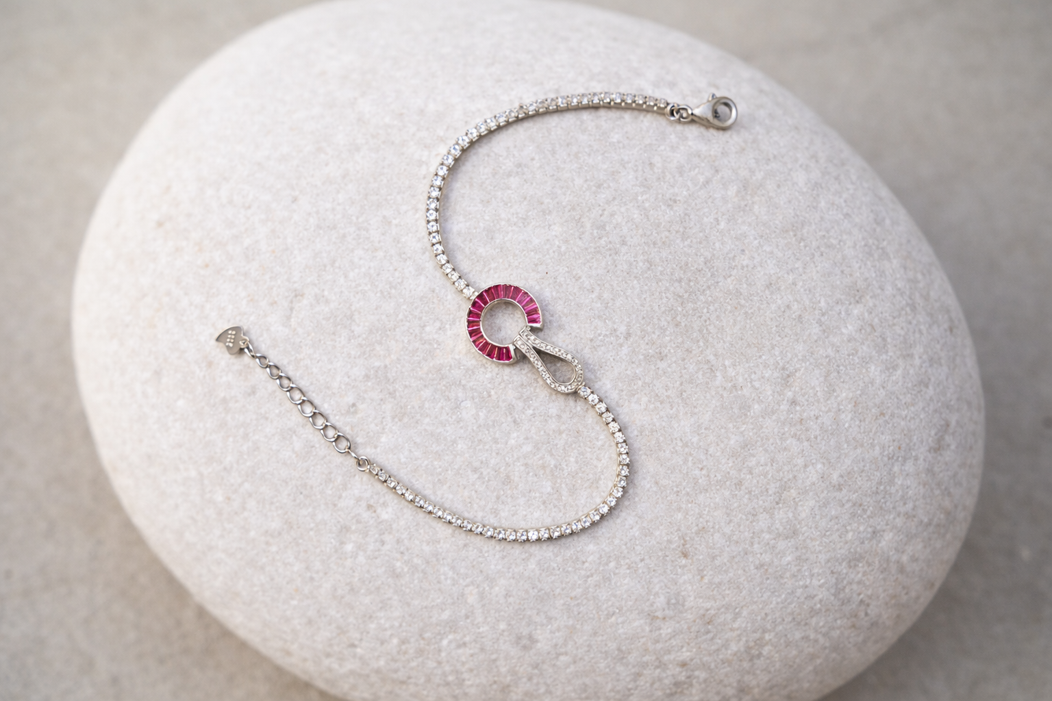 Home/Style/Bracelet/4.7 Gms Silver Bracelet Pink CZ Design