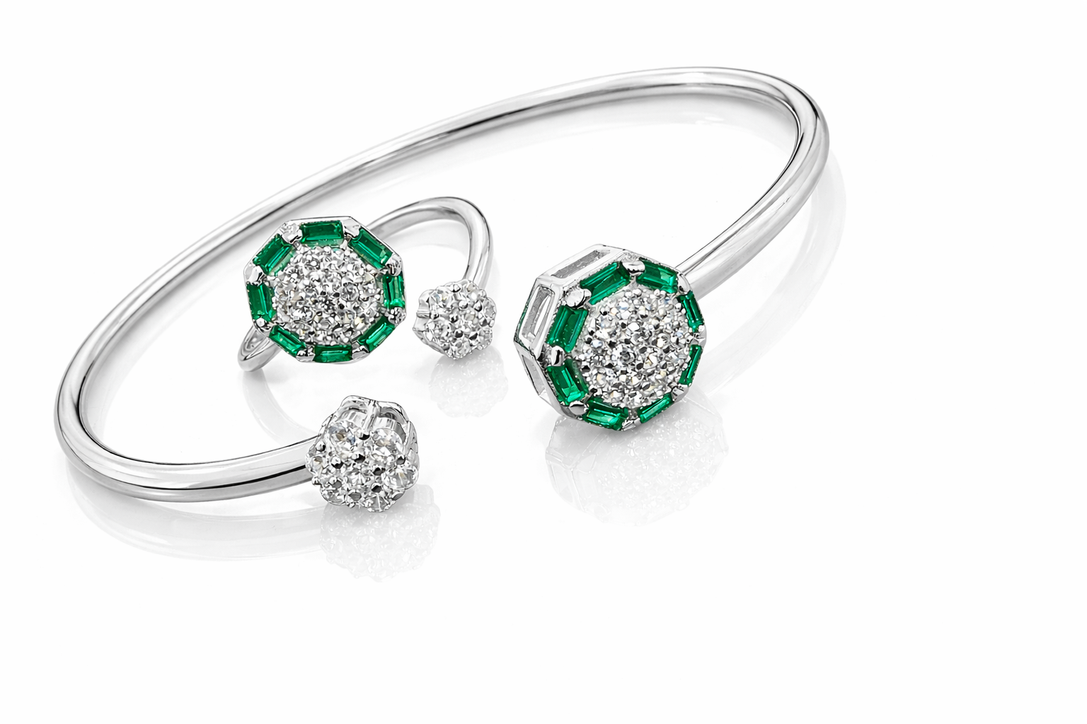 • Premium sterling silver bangle and ring set