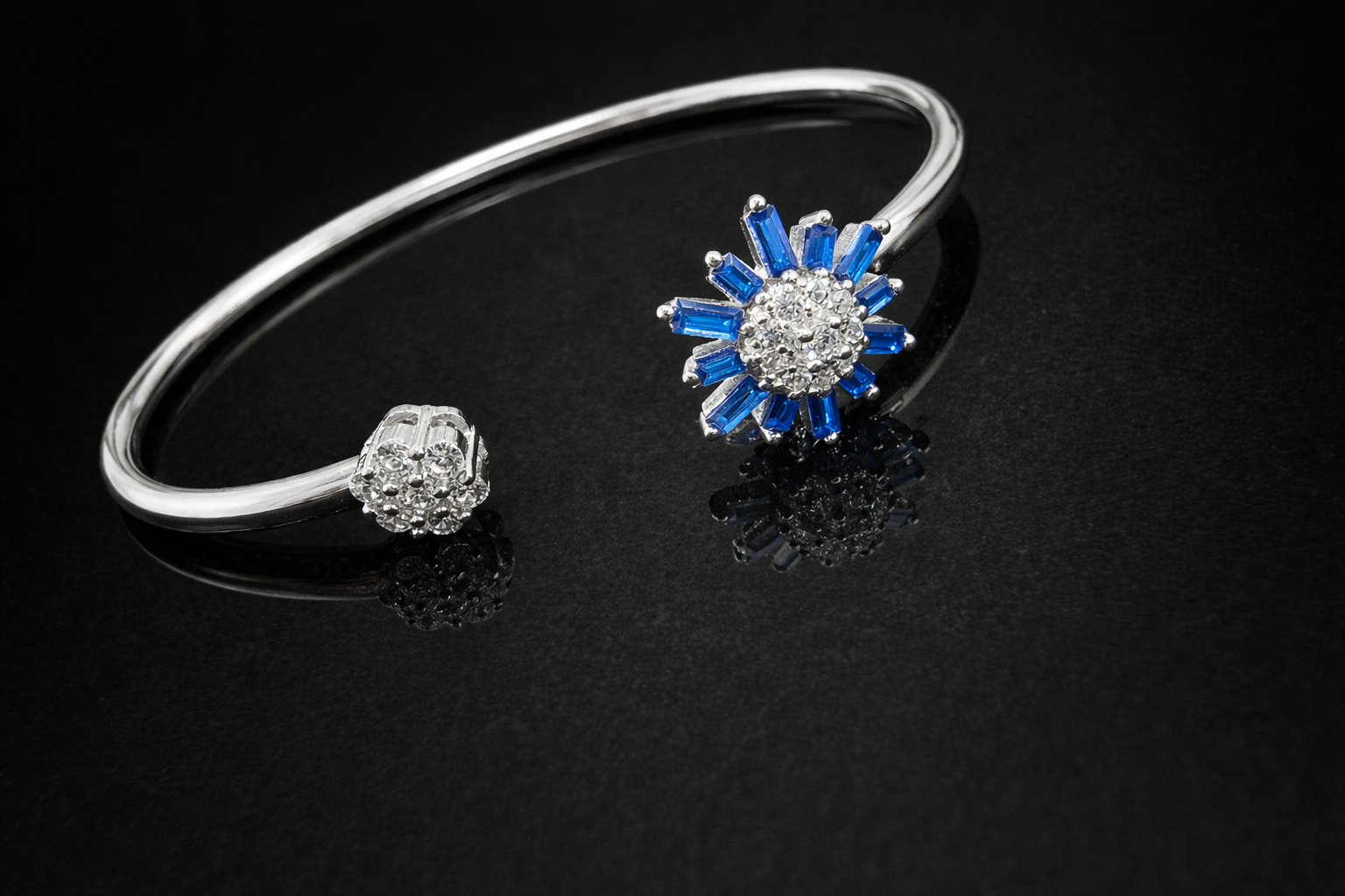 10 gms Silver Bangle and Ring Set Blue Cubic Zircon Design for women online Pure Silver 925 About Jewelry : The diamonds is setted with micro setting to make the look more better.The plating thic