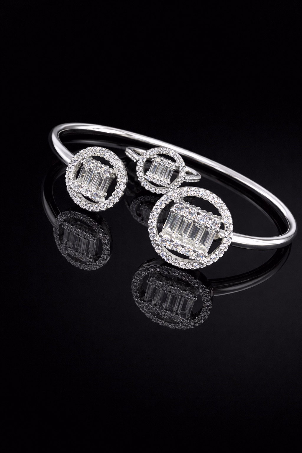 This silver CZ bangle and ring set makes an ideal gift for birthdays, anniversaries, bridal occasions, or special moments. A perfect blend of elegance, durability, and sparkle for every modern woman.