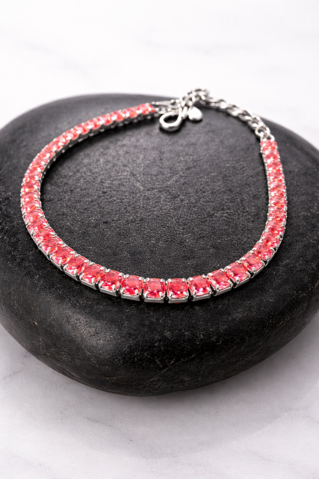 Home/Style/Bracelet/5.5 Gms Silver Tennis Bracelet Reddish Pink CZ Design