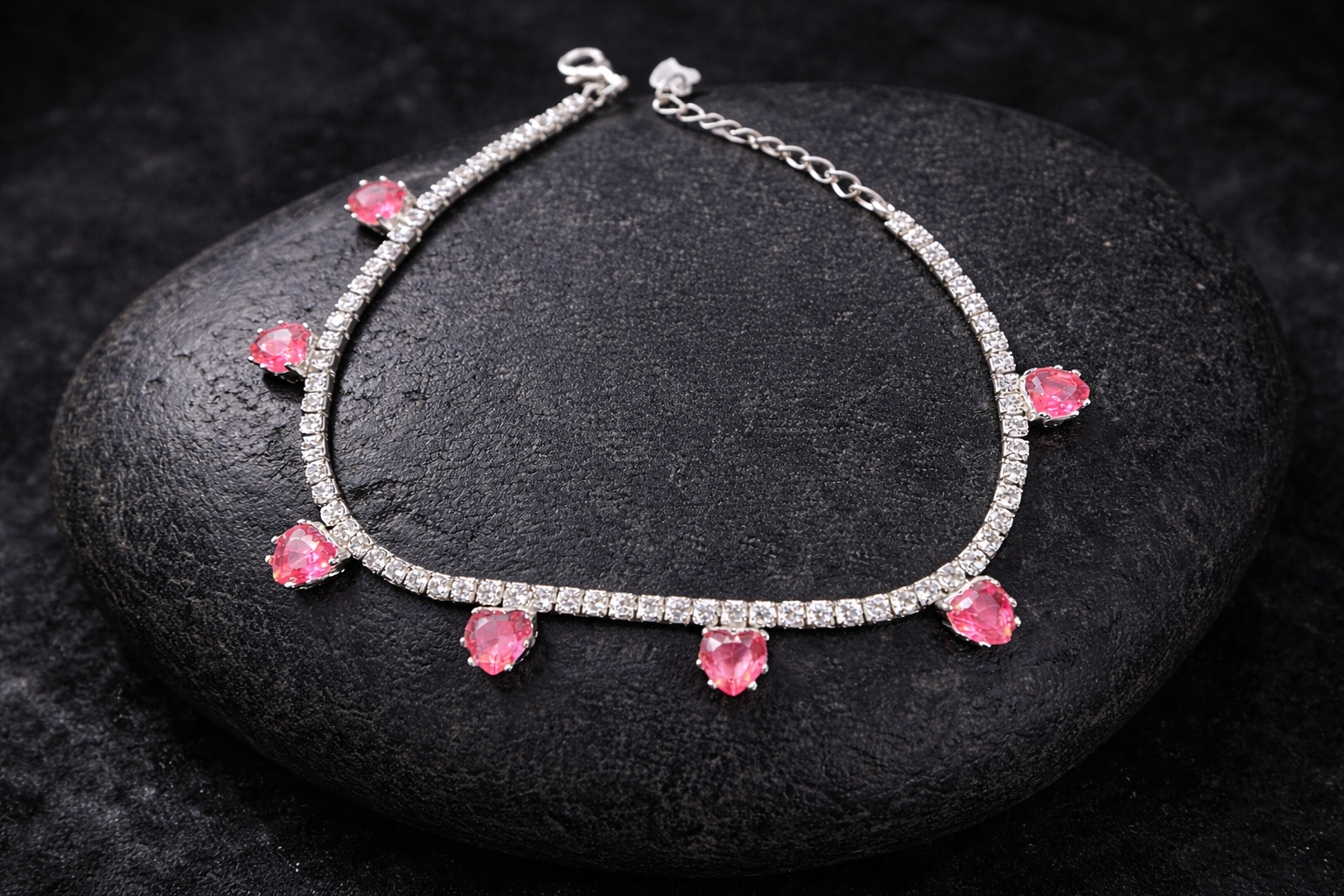 6.7 gms Silver Bracelet Red Cubic Zircon Design for ladies near me Adjustable Silver Rate About Jewelry : The diamonds is setted with micro setting to make the look more better.The plating thickness is 0.3mm of high Grade Rohdium Which make Jewelry life long last then normal Polishing. Its all nickel free which is safe for your skin BT141_RED