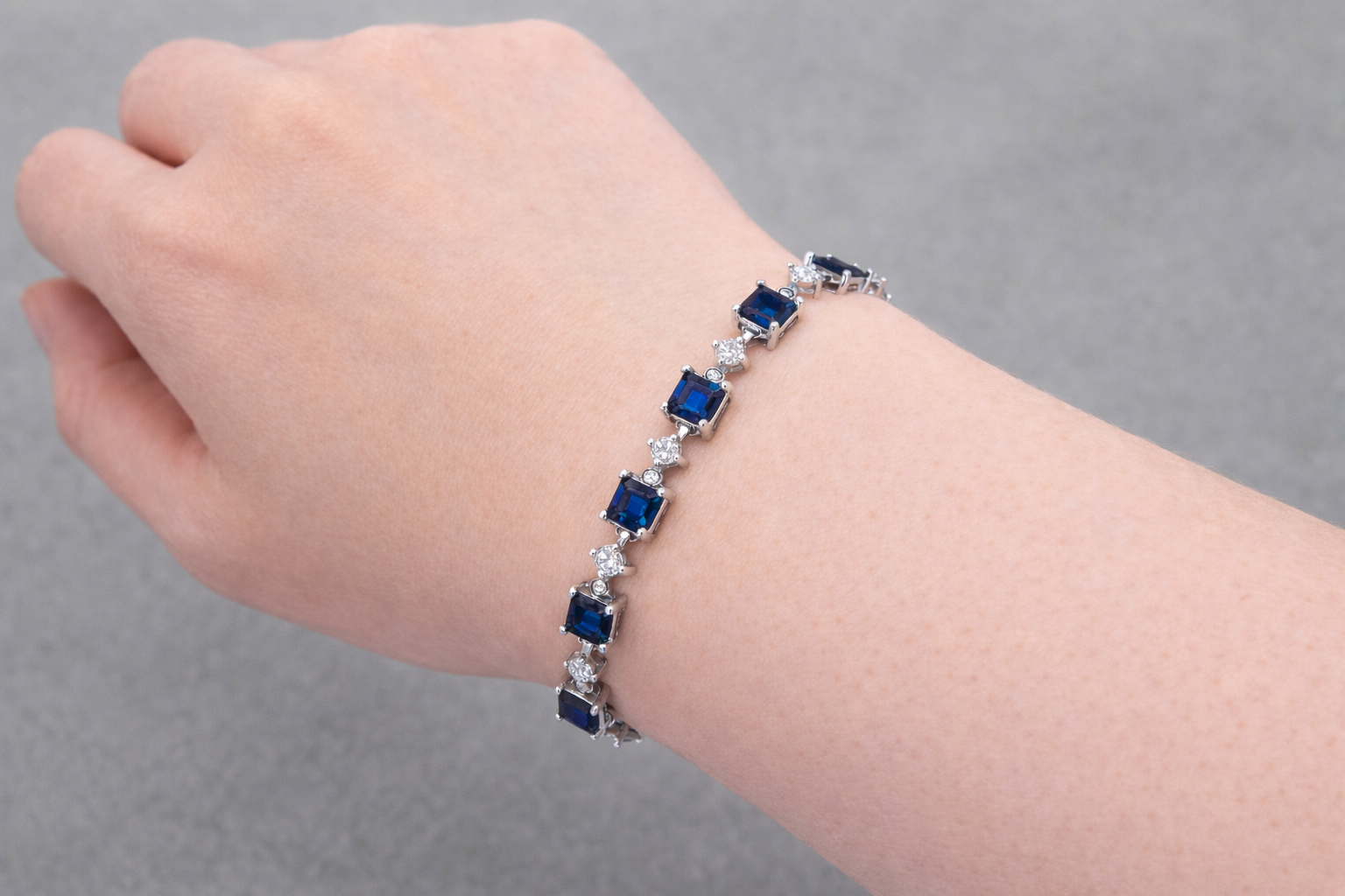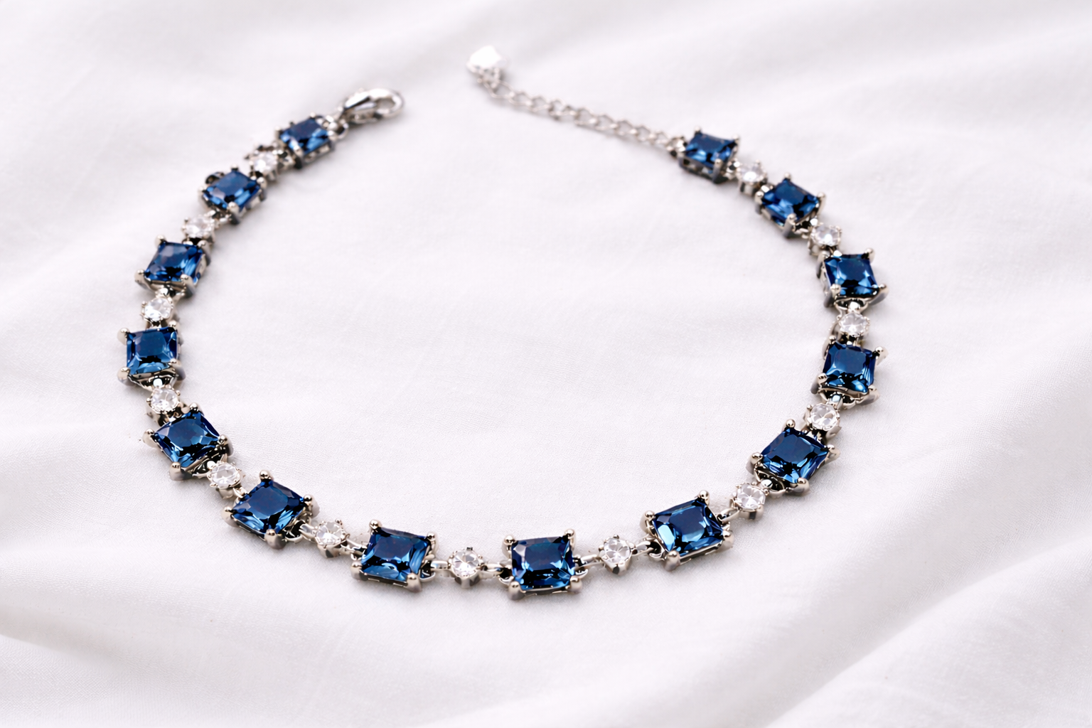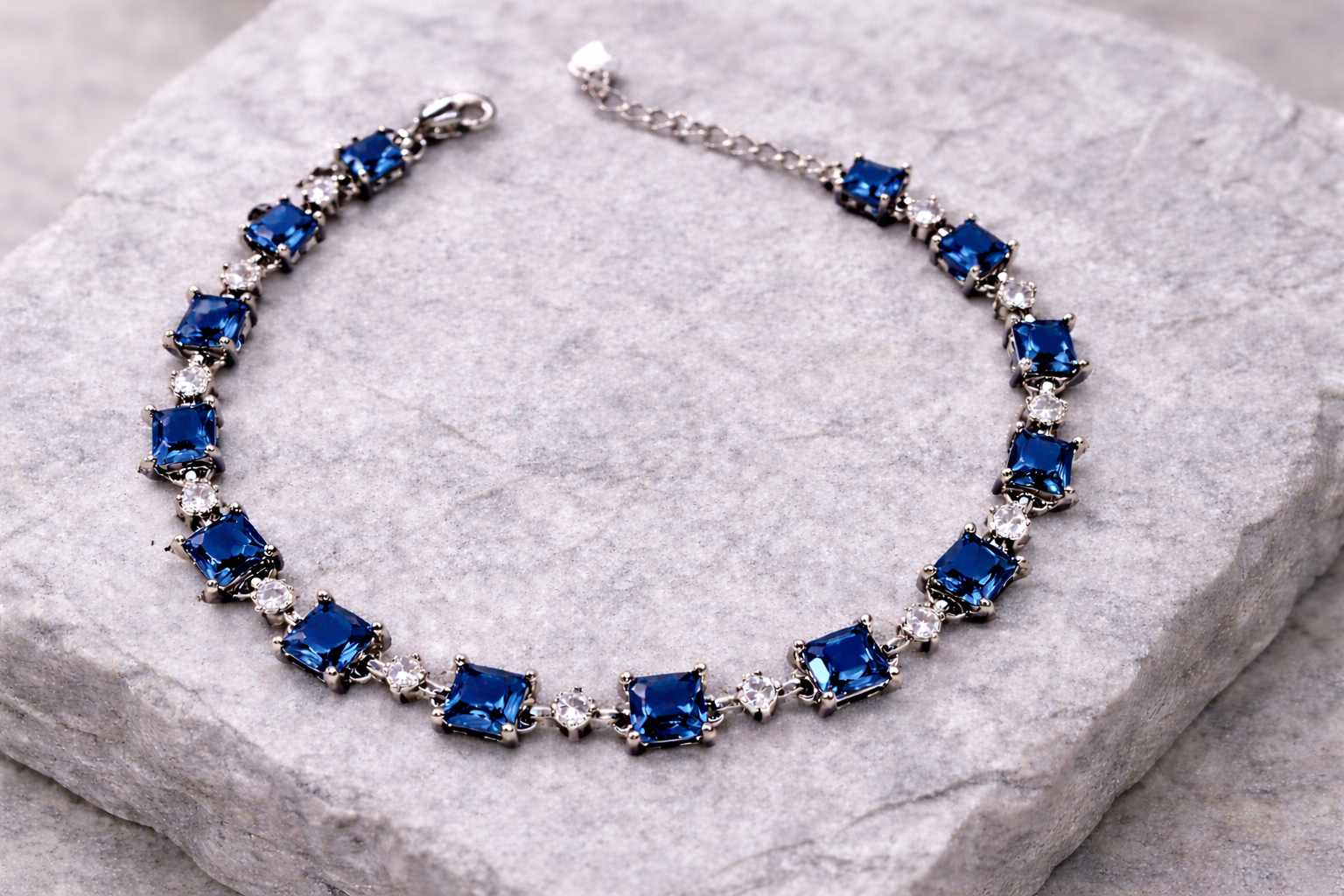 7.4 gms Silver Bracelet Blue Cubic Zircon Design for girls near me Adjustable Silver Rate About Jewelry : The diamonds is setted with micro setting to make the look more better.The plating thickness is 0.3mm of high Grade Rohdium Which make Jewelry life long last then normal Polishing. Its all nickel free which is safe for your skin BT142_BLU