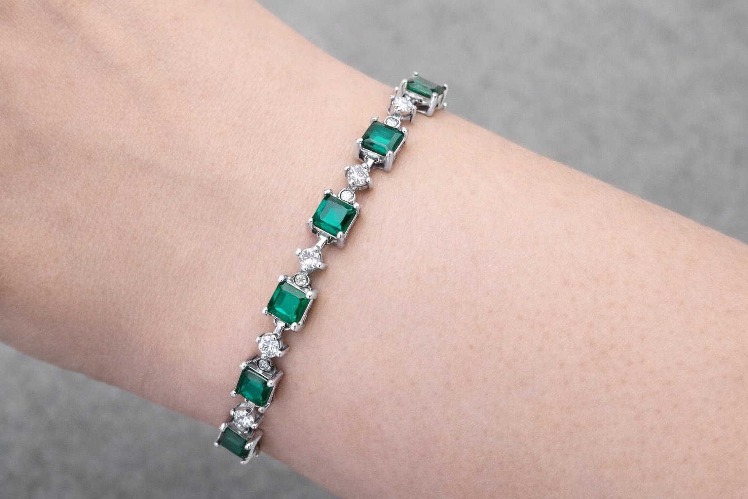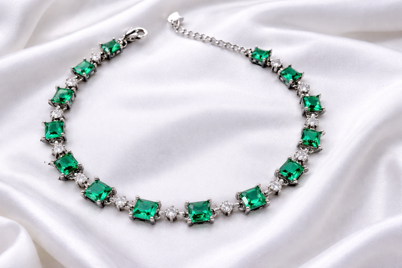7.4 gms Silver Bracelet Green Cubic Zircon Design for women online Adjustable Silver Rate About Jewelry : The diamonds is setted with micro setting to make the look more better.The plating thickness is 0.3mm of high Grade Rohdium Which make Jewelry life long last then normal Polishing. Its all nickel free which is safe for your skin BT142_GRN