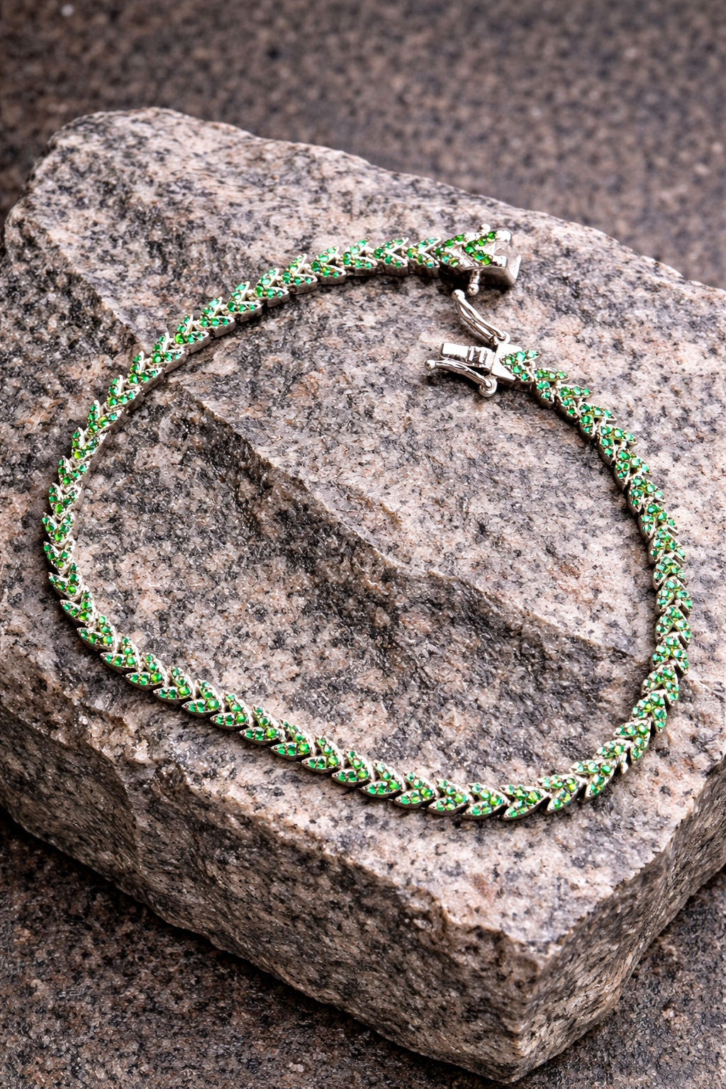 10 gms Silver Bracelet Green Cubic Zircon Design for girls online Adjustable Silver Rate About Jewelry : The diamonds is setted with micro setting to make the look more better.The plating thickness is 0.3mm of high Grade Rohdium Which make Jewelry life long last then normal Polishing. Its all nickel free which is safe for your skin BT143_GRN