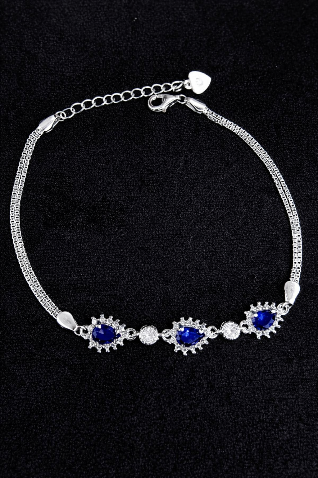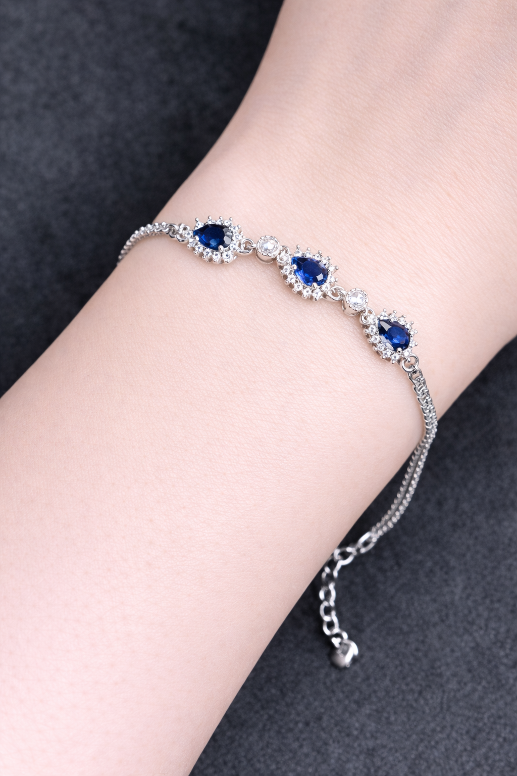 4.7 gms Silver Bracelet Blue Cubic Zircon Design for girls online Adjustable Silver Rate About Jewelry : The diamonds is setted with micro setting to make the look more better.The plating thickness is 0.3mm of high Grade Rohdium Which make Jewelry life long last then normal Polishing. Its all nickel free which is safe for your skin BT146_BLU