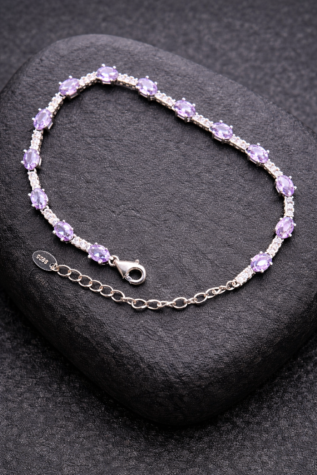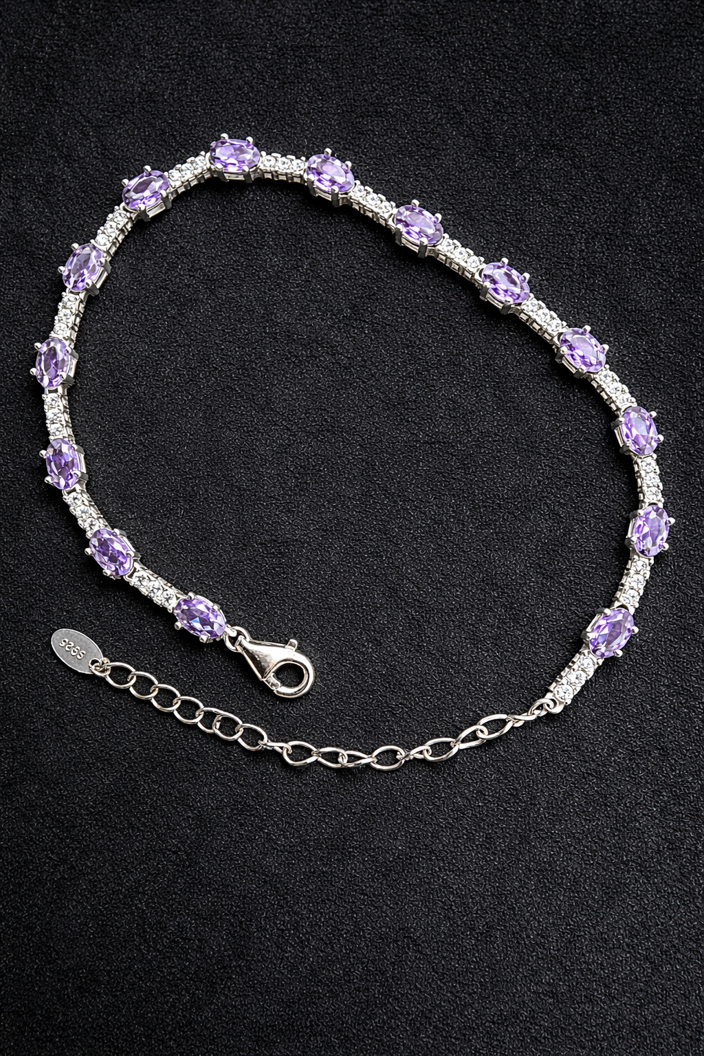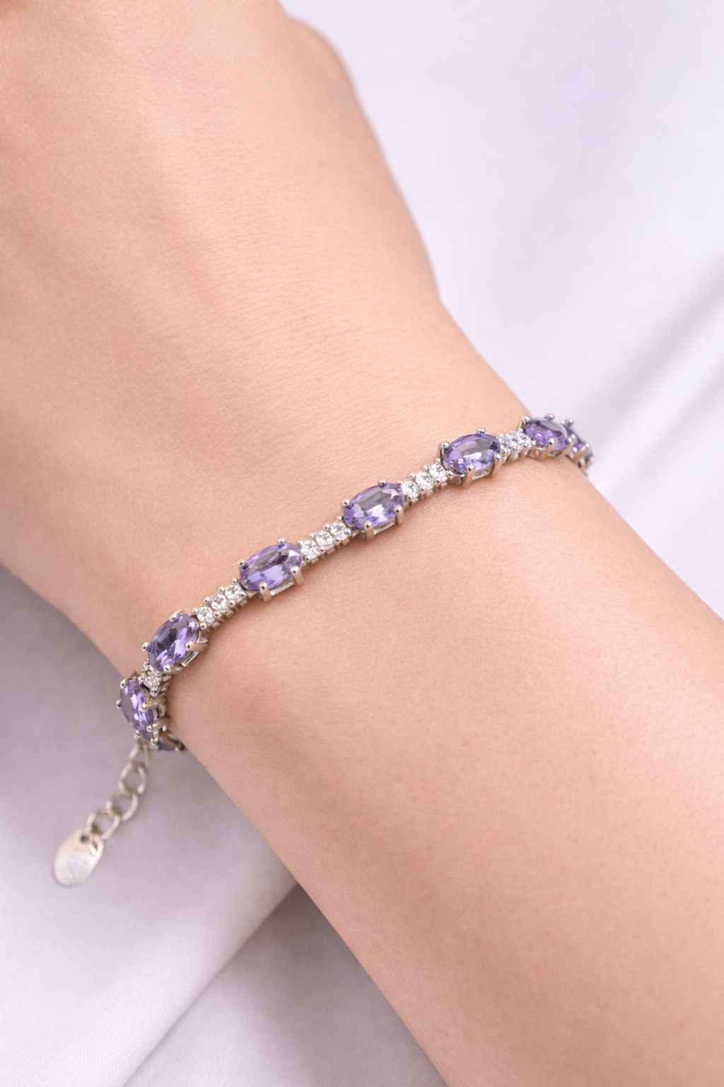 7 gms Silver Bracelet Purple Cubic Zircon Design for ladies online Adjustable Silver Rate About Jewelry : The diamonds is setted with micro setting to make the look more better.The plating thickness is 0.3mm of high Grade Rohdium Which make Jewelry life long last then normal Polishing. Its all nickel free which is safe for your skin BT149_PRL