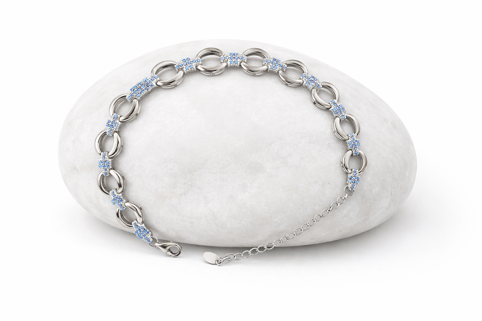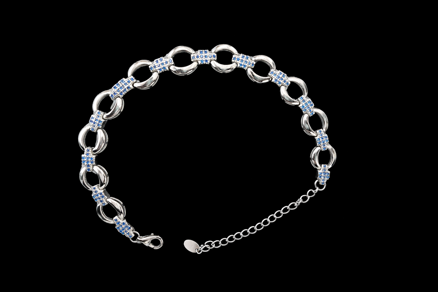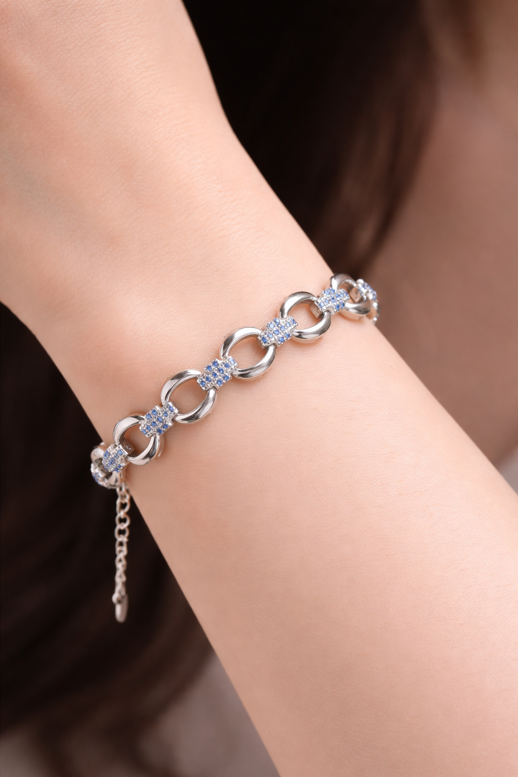 12.3 gms Silver Bracelet Blue Cubic Zircon Design for women near me Adjustable Silver Rate About Jewelry : The diamonds is setted with micro setting to make the look more better.The plating thickness is 0.3mm of high Grade Rohdium Which make Jewelry life long last then normal Polishing. Its all nickel free which is safe for your skin BT154_BLU