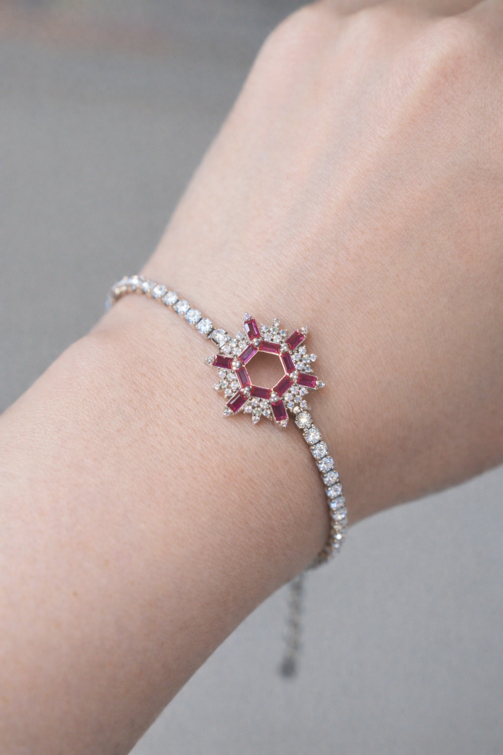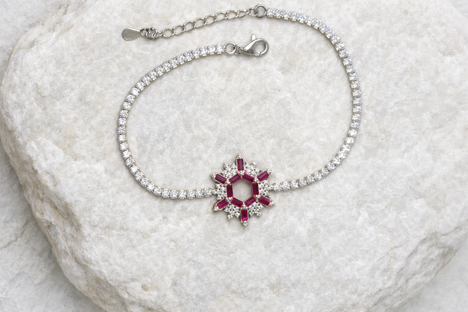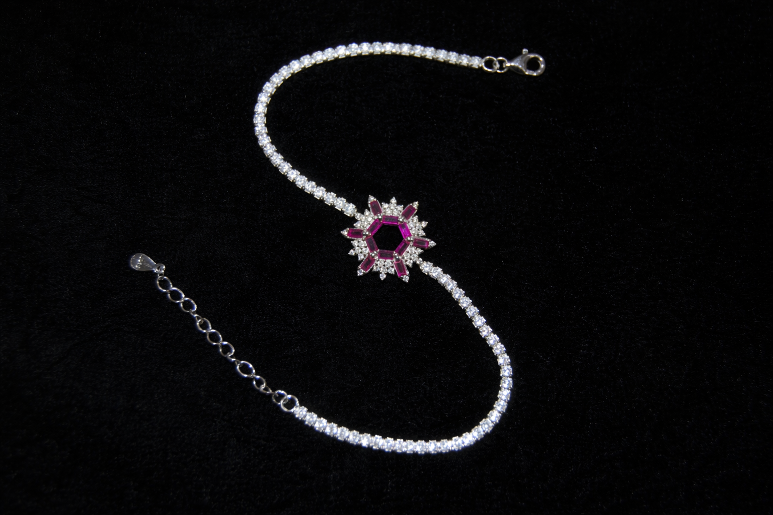 5.8 gms Silver Bracelet Pink Cubic Zircon Design for girls online Adjustable Silver Rate About Jewelry : The diamonds is setted with micro setting to make the look more better.The plating thickness is 0.3mm of high Grade Rohdium Which make Jewelry life long last then normal Polishing. Its all nickel free which is safe for your skin BT160_PNK
