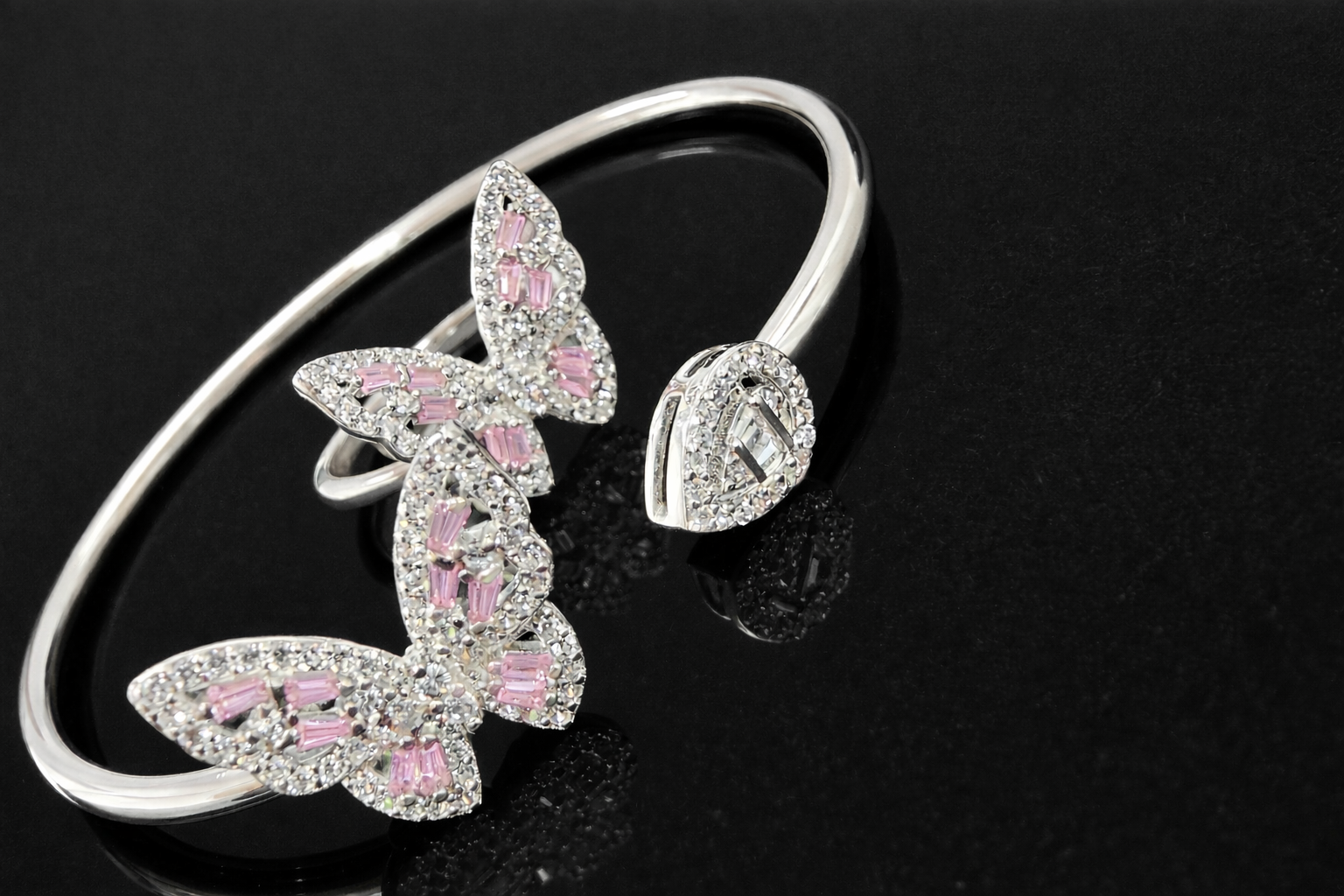 10 gms Silver Bangle and Ring Set Light Pink Cubic Zircon Design for women near me real silver 925 About Jewelry : The diamonds is setted with micro setting to make the look more better.The plating thickness is 0.3mm of high Grade Rohdium Which make Jewelry life long last then normal Polishing. Its all nickel free which is safe for your skin BF118_LPNK