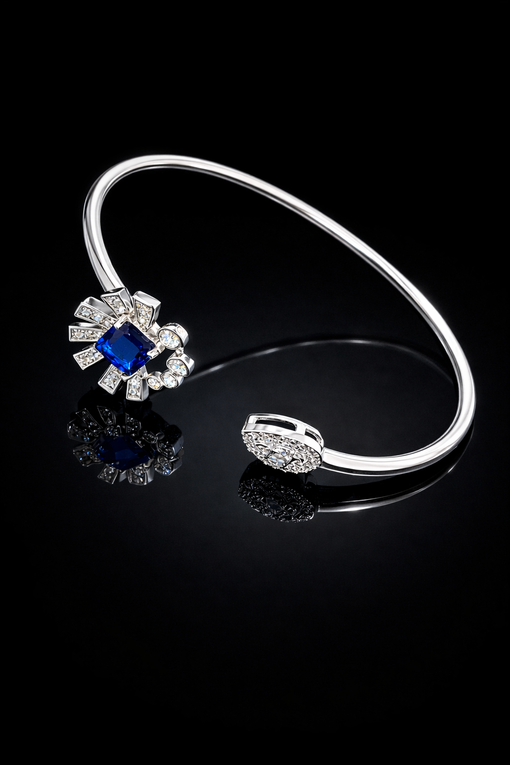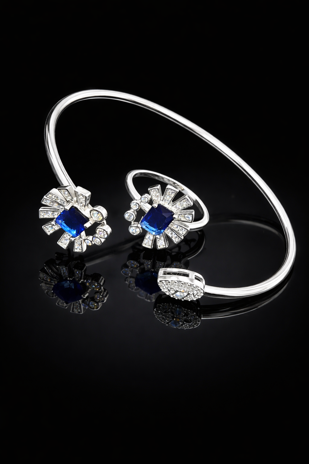 10 gms Silver Bangle and Ring Set Blue Cubic Zircon Design for ladies online real silver 925 About Jewelry : The diamonds is setted with micro setting to make the look more better.The plating thickness is 0.3mm of high Grade Rohdium Which make Jewelry life long last then normal Polishing. Its all nickel free which is safe for your skin BF119_BLU