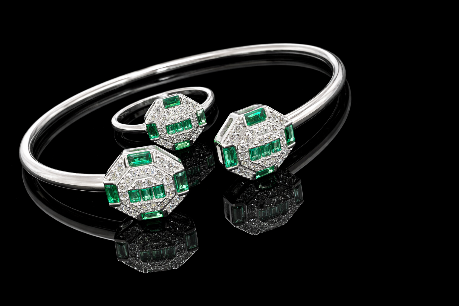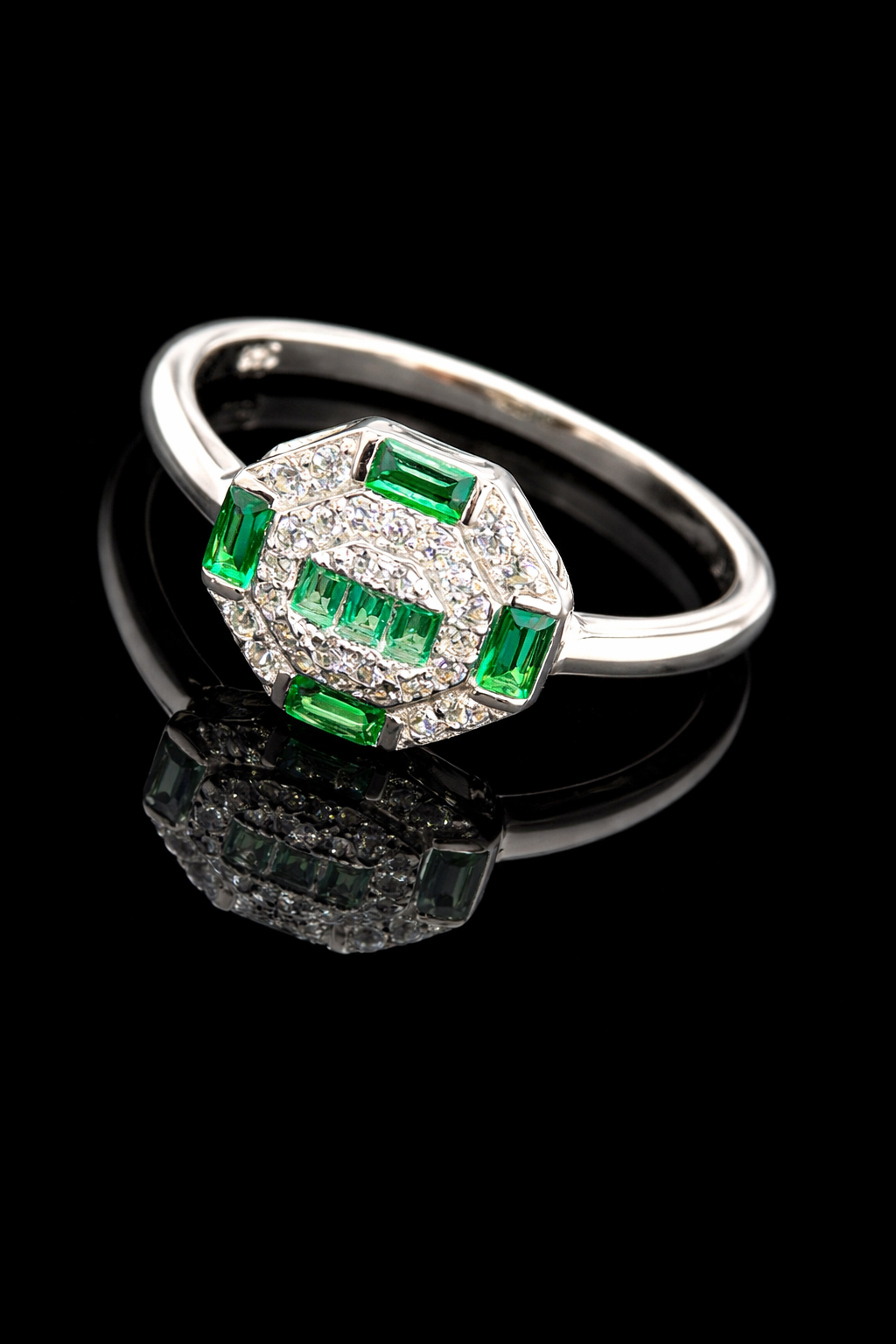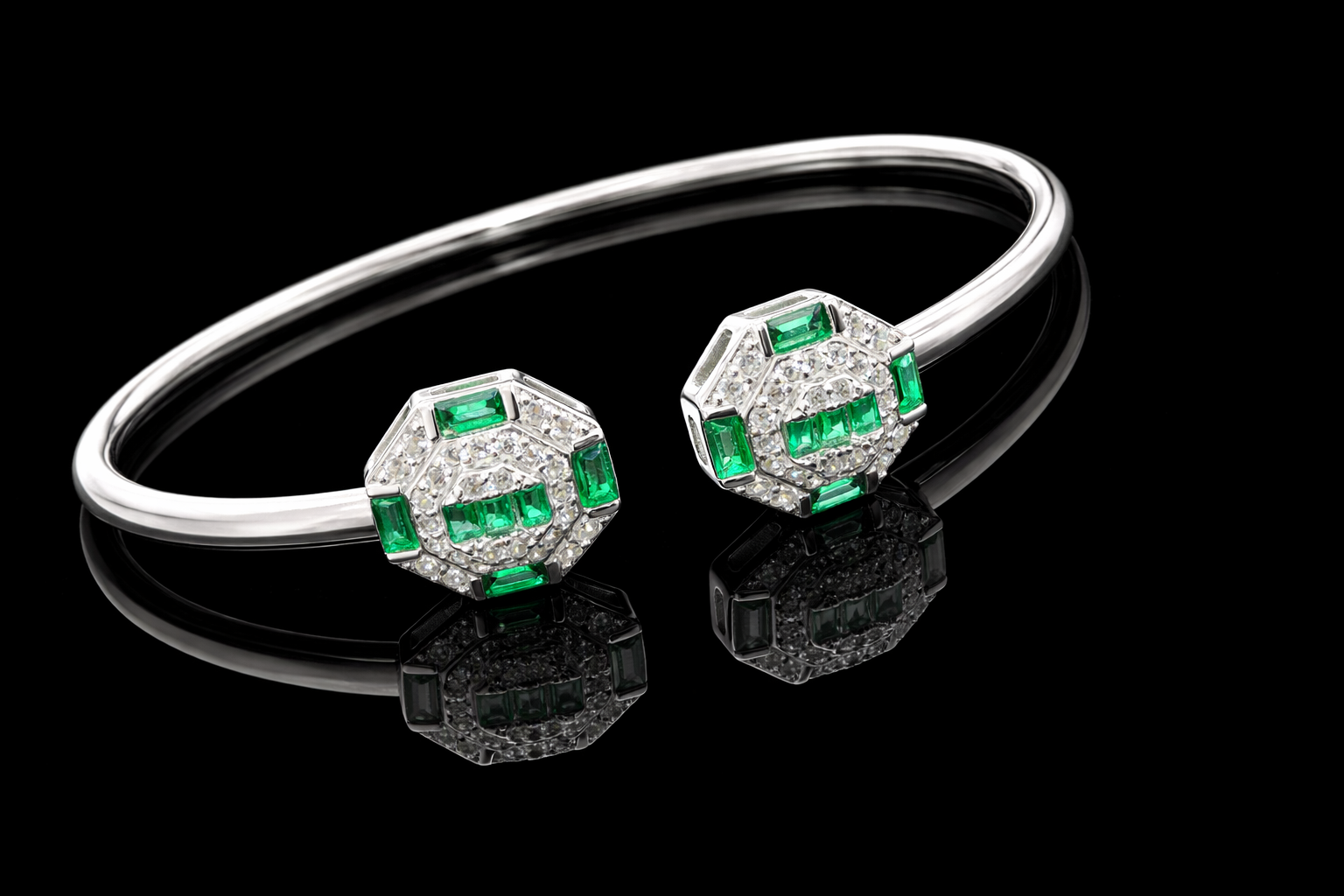 10 gms Silver Bangle and Ring Set Green Cubic Zircon Design for women online real silver 925 About Jewelry : The diamonds is setted with micro setting to make the look more better.The plating thickness is 0.3mm of high Grade Rohdium Which make Jewelry life long last then normal Polishing. Its all nickel free which is safe for your skin BF122_GRN