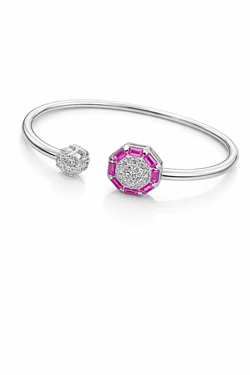 10 gms Silver Bangle and Ring Set Pink Cubic Zircon Design for girls online real silver 925 About Jewelry : The diamonds is setted with micro setting to make the look more better.The plating thickness is 0.3mm of high Grade Rohdium Which make Jewelry life long last then normal Polishing. Its all nickel free which is safe for your skin BF125_PNK