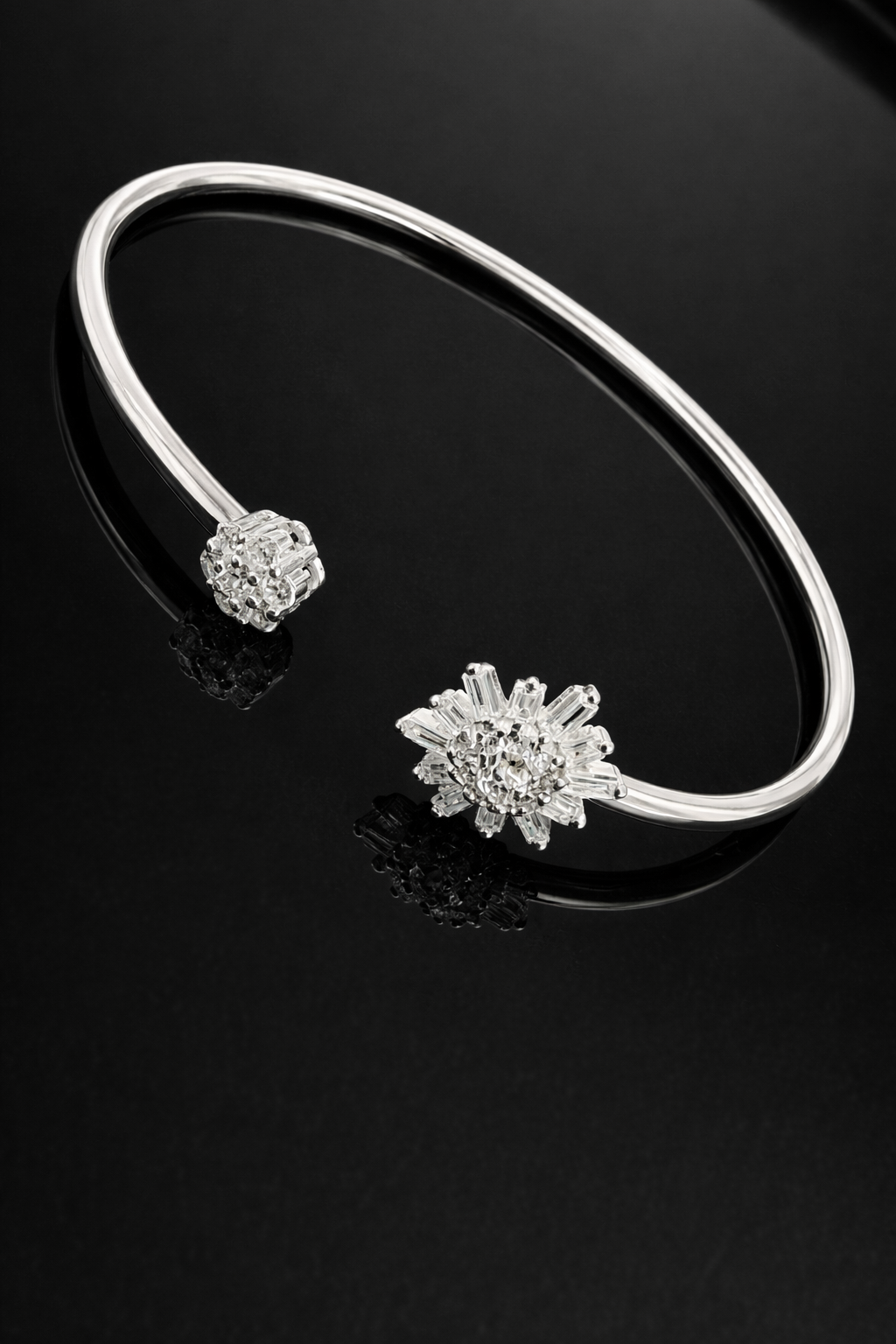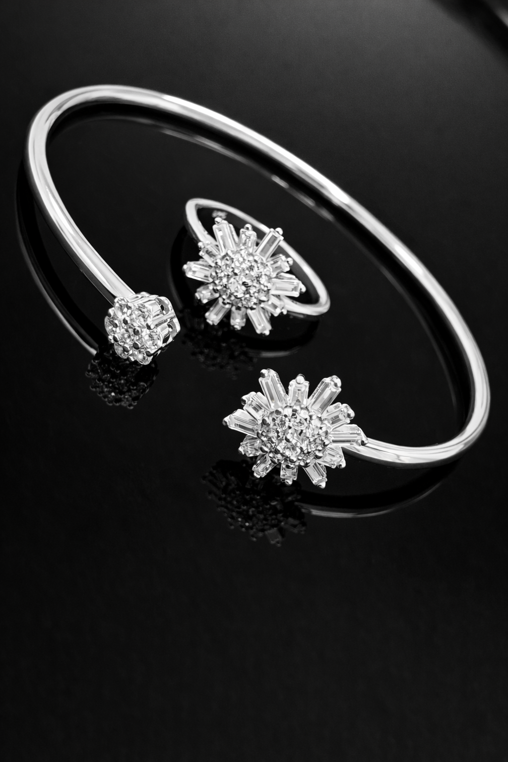 10 gms Silver Bangle and Ring Set White Cubic Zircon Design for ladies near me Pure Silver 925 About Jewelry : The diamonds is setted with micro setting to make the look more better.The plating thickness is 0.3mm of high Grade Rohdium Which make Jewelry life long last then normal Polishing. Its all nickel free which is safe for your skin BF129_WHT