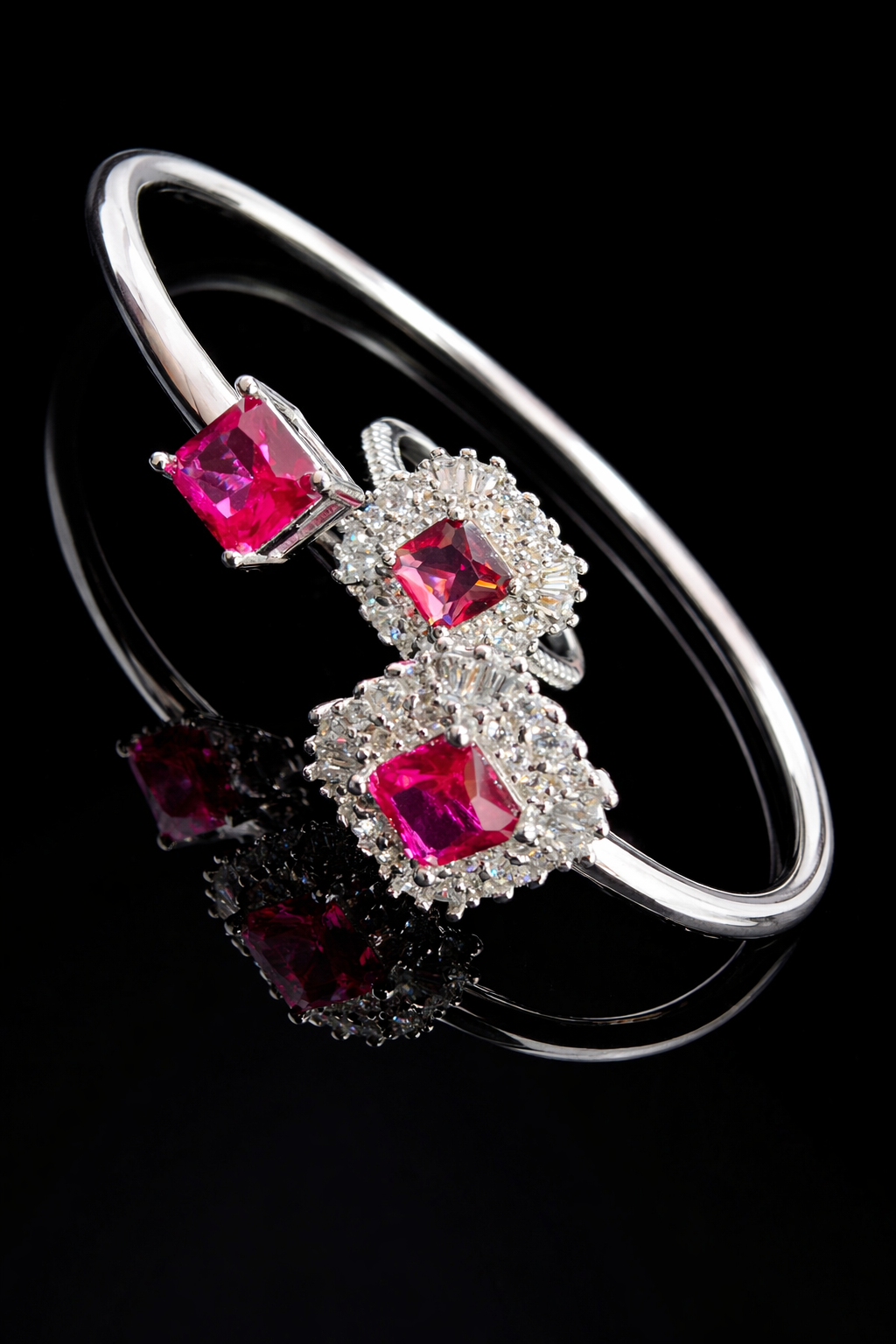 10 gms Silver Bangle and Ring Set Pinkish Red Cubic Zircon Design for women online Pure Silver 925 About Jewelry : The diamonds is setted with micro setting to make the look more better.The plating thickness is 0.3mm of high Grade Rohdium Which make Jewelry life long last then normal Polishing. Its all nickel free which is safe for your skin BF133_P RED