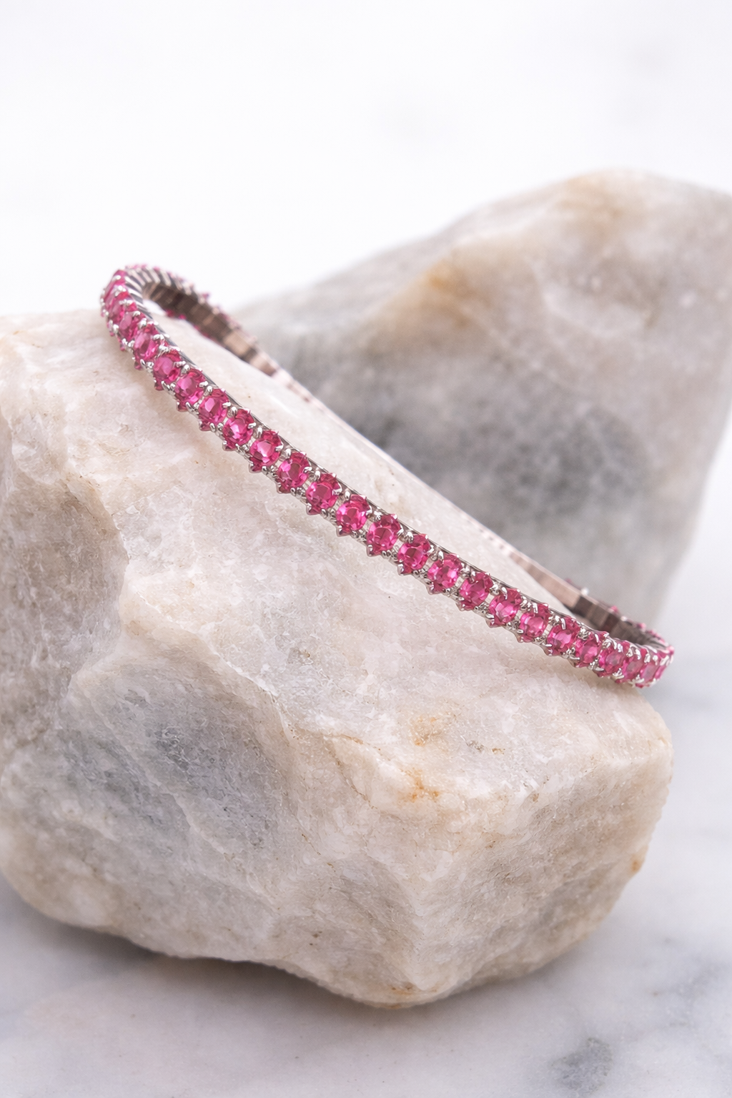5.6 gms Silver Bangle Pink Cubic Zircon Design for ladies near me Pure Silver 925 About Jewelry : The diamonds is setted with micro setting to make the look more better.The plating thickness is 0.3mm of high Grade Rohdium Which make Jewelry life long last then normal Polishing. Its all nickel free which is safe for your skin BT114