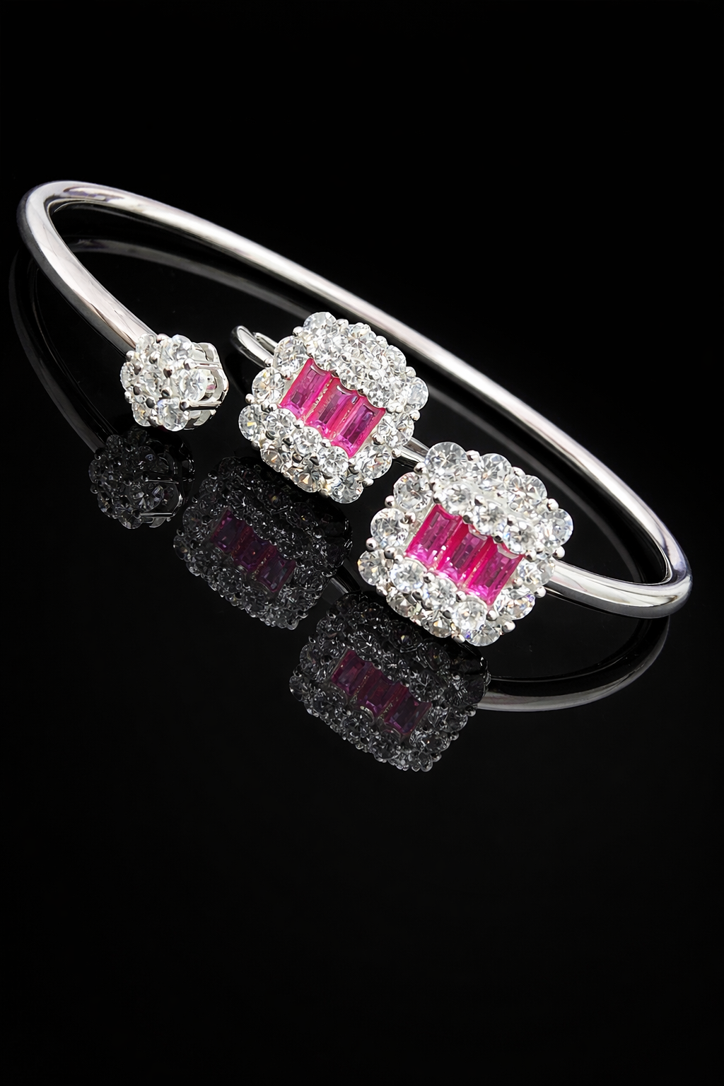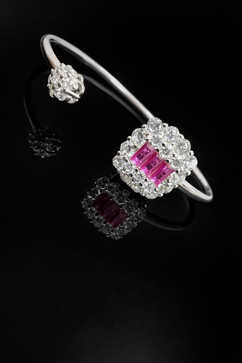 Pure Silver Bangle with Ring Set with Sparkling Cubic Zircon Stones Gift for Women Luxury