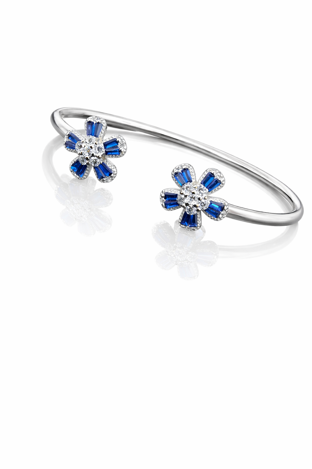 Pure Silver Bangle with Ring Set with Sparkling Cubic Zircon Stones Gift for Women Unforgettable