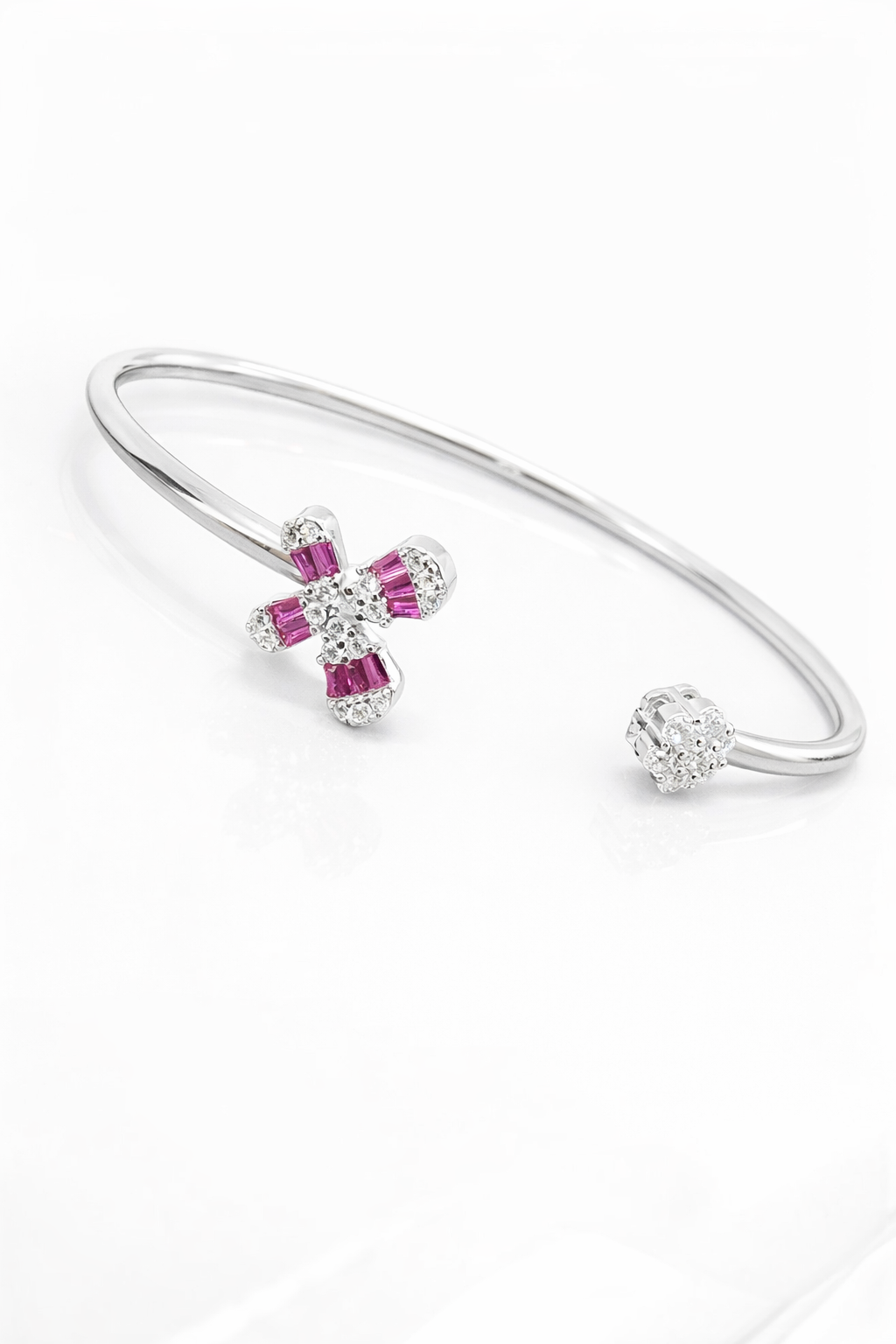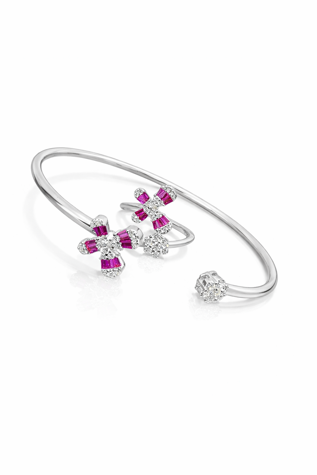Pure Silver Bangle with Ring Set with Sparkling Cubic Zircon Stones Gift for Women Surprising