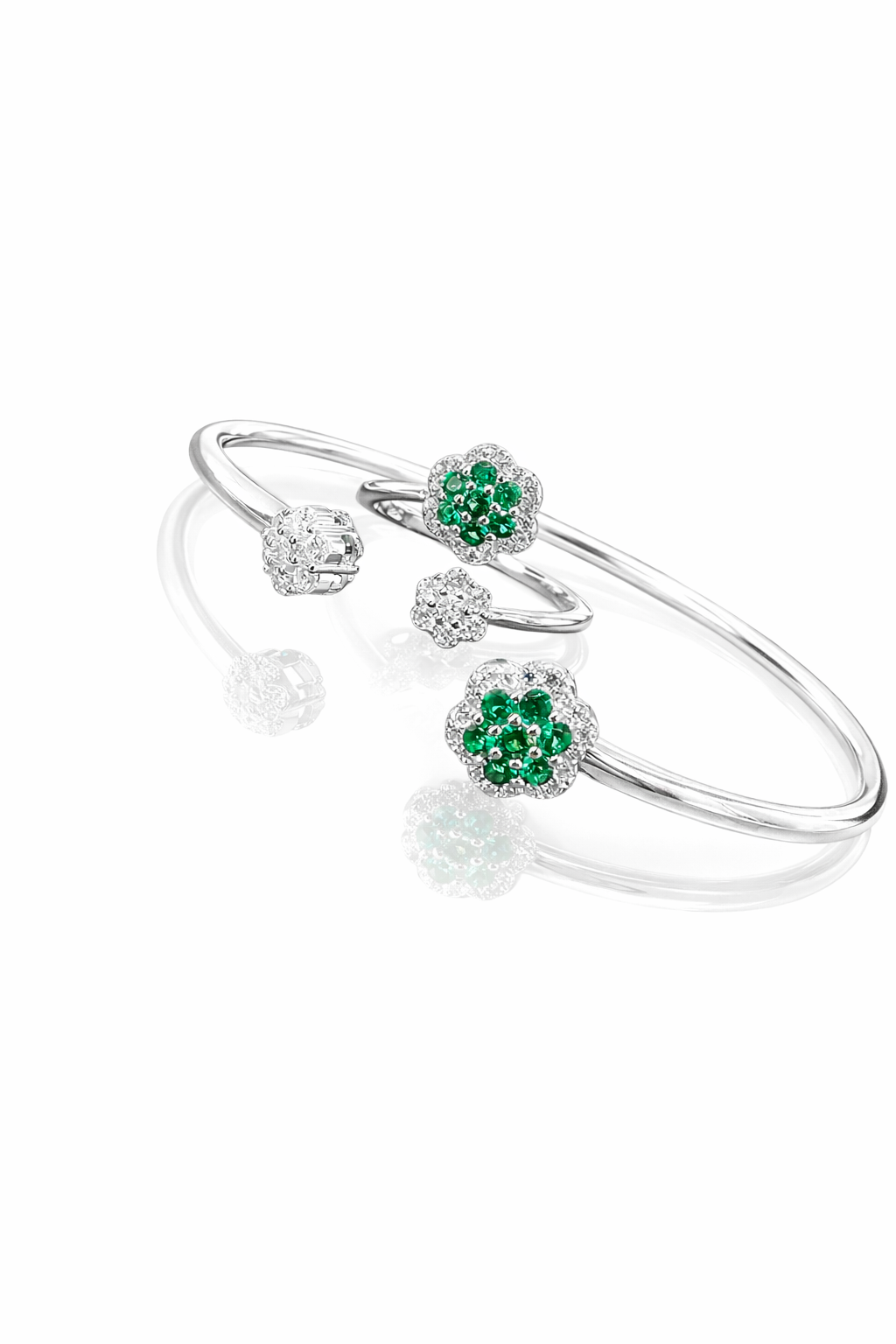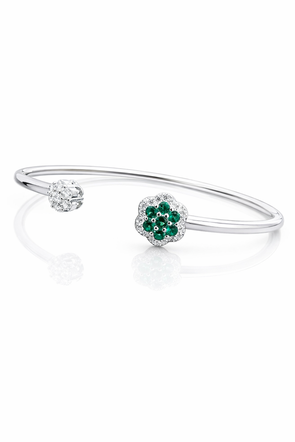 Pure Silver Bangle with Ring Set with Sparkling Cubic Zircon Stones Gift for Women Perfect