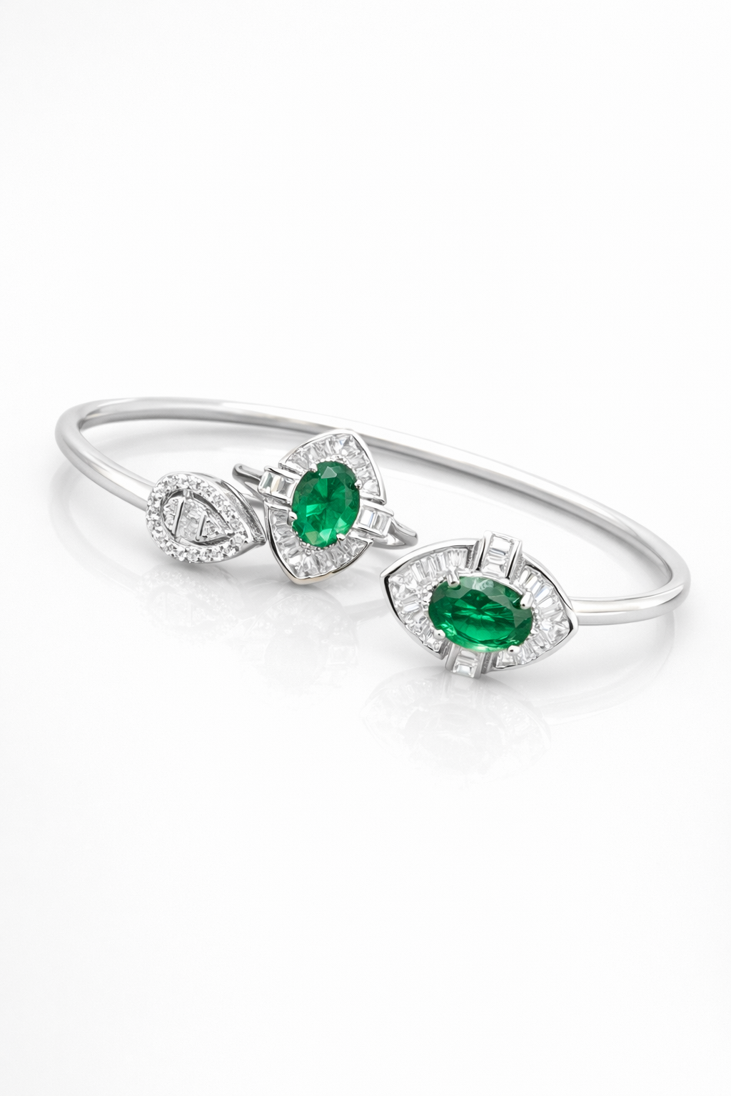 Pure Silver Bangle with Ring Set with Sparkling Cubic Zircon Stones Gift for Women Economical