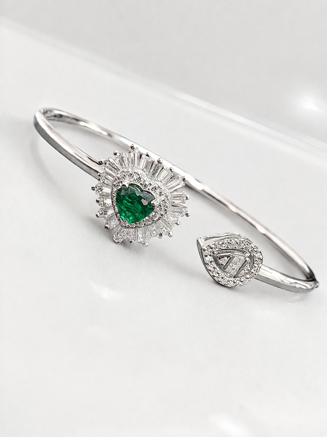 Introducing our Elegant Silver Bangle with Ring, meticulously designed with exquisite cubic zirconia for girls and women, perfect for daily wear. This adjustable piece combines sophistication with versatility, making it an ideal addition to any jewelry collection.